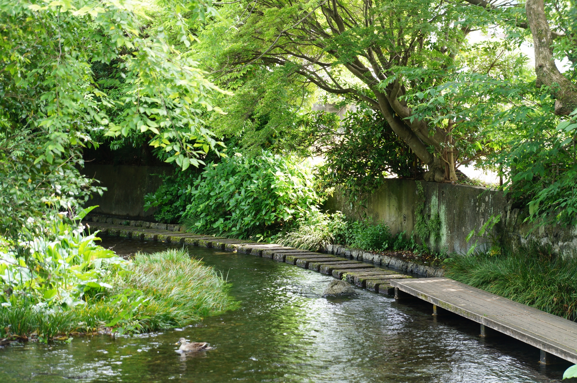 | 源兵衛川 水辺の散歩道 | 川の中に飛び石や木道が整備され、水面を間近に感じながら歩けるのが魅力です。 |