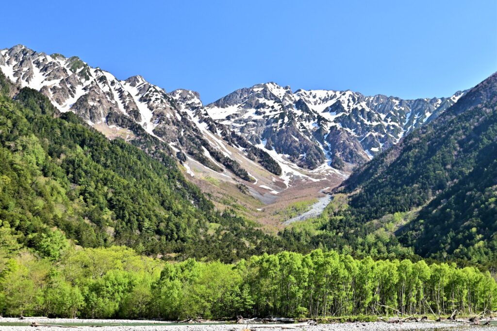 • 春(新緑):新緑の芽吹きと残雪の穂高連峰、そして朝焼けのコントラストが美しい時期です。