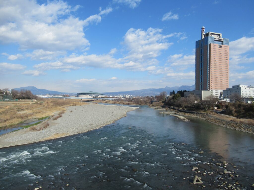 | 広い河川敷とゴルフ場 | 海まで67km付近では、河川敷が大きく広がり、その中にゴルフコースが広がる開放的な景色が楽しめる。 | 通年 |