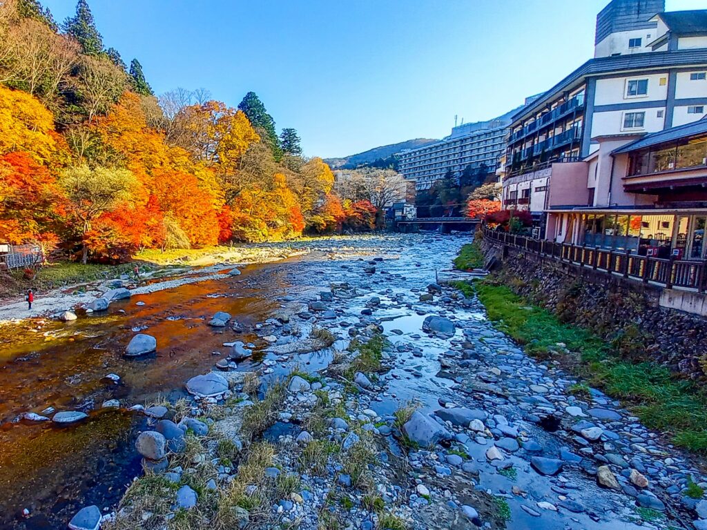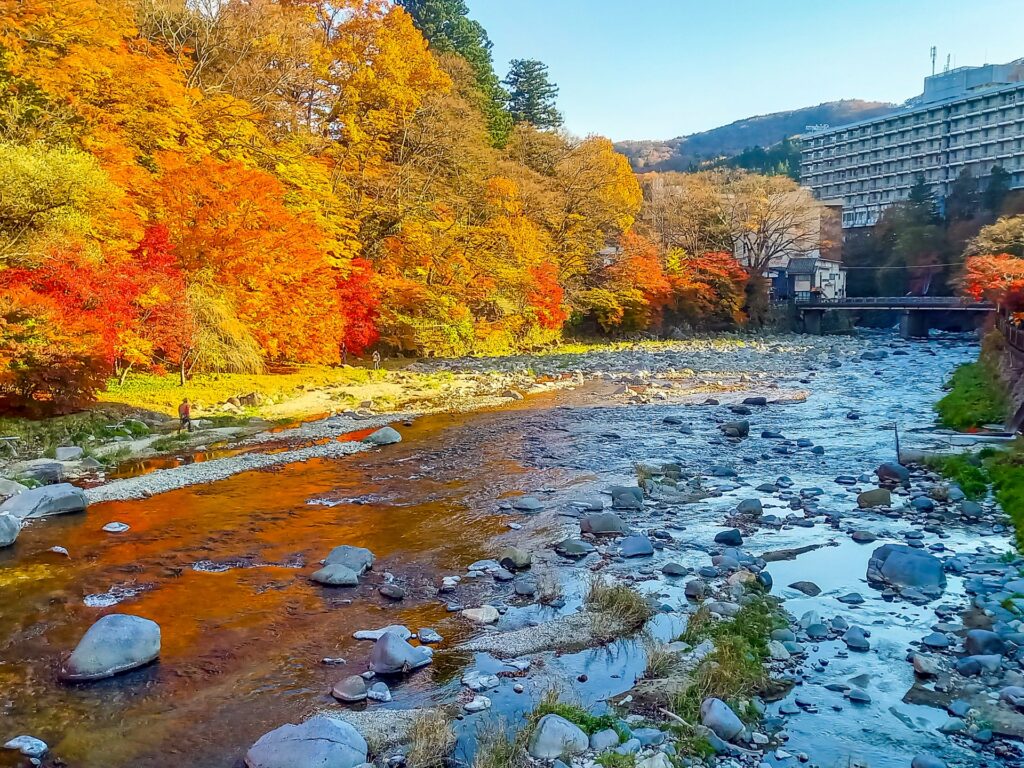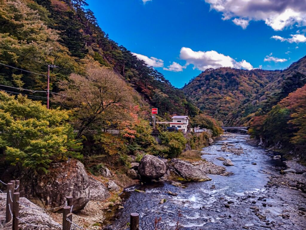 塩原温泉郷を流れる箒川(ほうきがわ)は、その名の通り、透き通るような清らかな水が特徴です。川底の小石まで鮮明に見えるほどの透明度は、訪れる人々を魅了します。周囲を深い緑の木々に囲まれ、川のせせらぎがBGMとなるこの空間は、まさに自然が織りなす最高のヒーリングスポットと言えるでしょう。