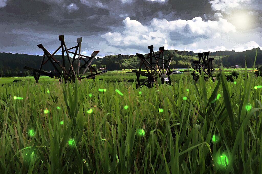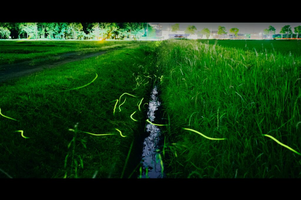 • 田園地帯の奥まった場所:夜間の田んぼは、ホタルが舞う絶好の舞台となることがあります。特に、集落から少し離れた、街灯の少ない田園地帯は、ホタルの光が際立ちやすい環境です。ただし、農地への無断立ち入りは厳禁であり、周囲の環境に十分配慮することが求められます。
