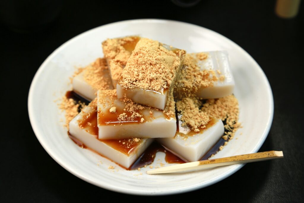 - 久寿餅(くずもち): 川崎大師名物として古くから親しまれる久寿餅は、小麦粉を発酵させて作る独特の和菓子です。三角形に切られた久寿餅は厄除けの意味も込められており、黒蜜ときな粉をかけて味わいます。無添加で日持ちがしないため、できたてをその場で味わうのがおすすめです。山門前の「住吉」などが有名です。