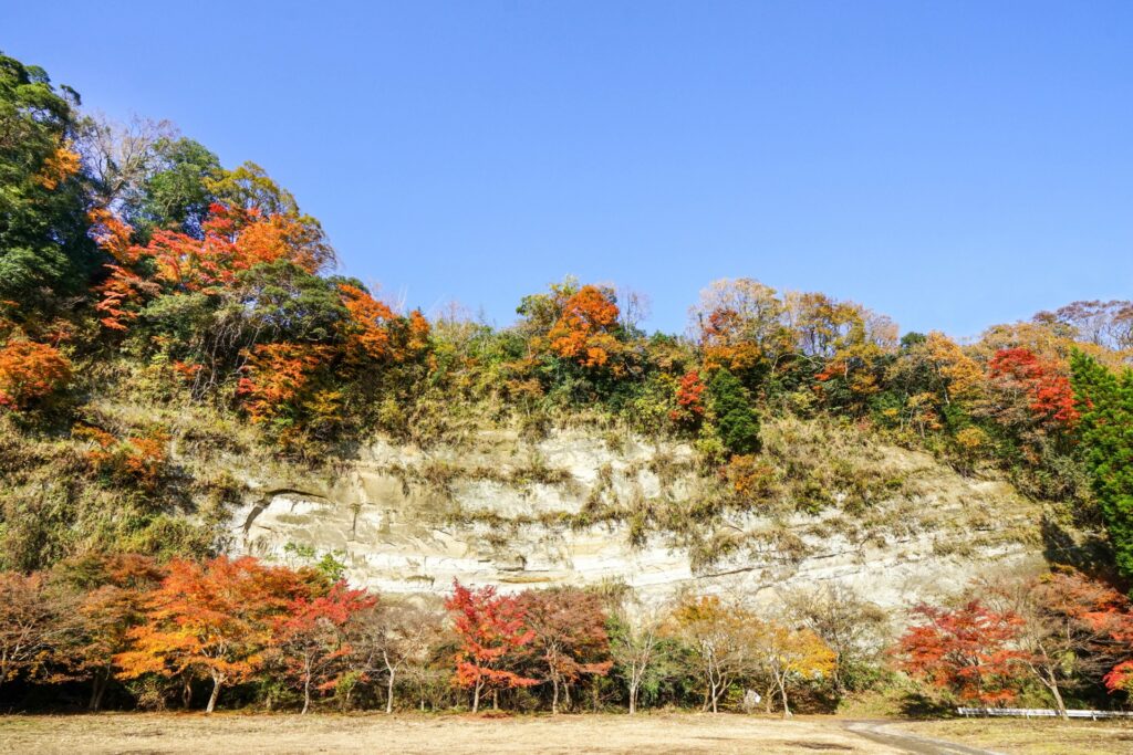 梅ヶ瀬渓谷の最大の魅力は、その手つかずの自然が織りなす景観です。両側に高さ30~50mもの浸食崖が続くダイナミックな景観は、訪れる人々に感動を与えます。 清らかな養老川の流れが、訪れる人々に感動を与えます。四季折々の表情を見せる渓谷は、春には新緑、夏には深緑、そして秋には燃えるような紅葉と、季節ごとに異なる美しさを見せてくれます。