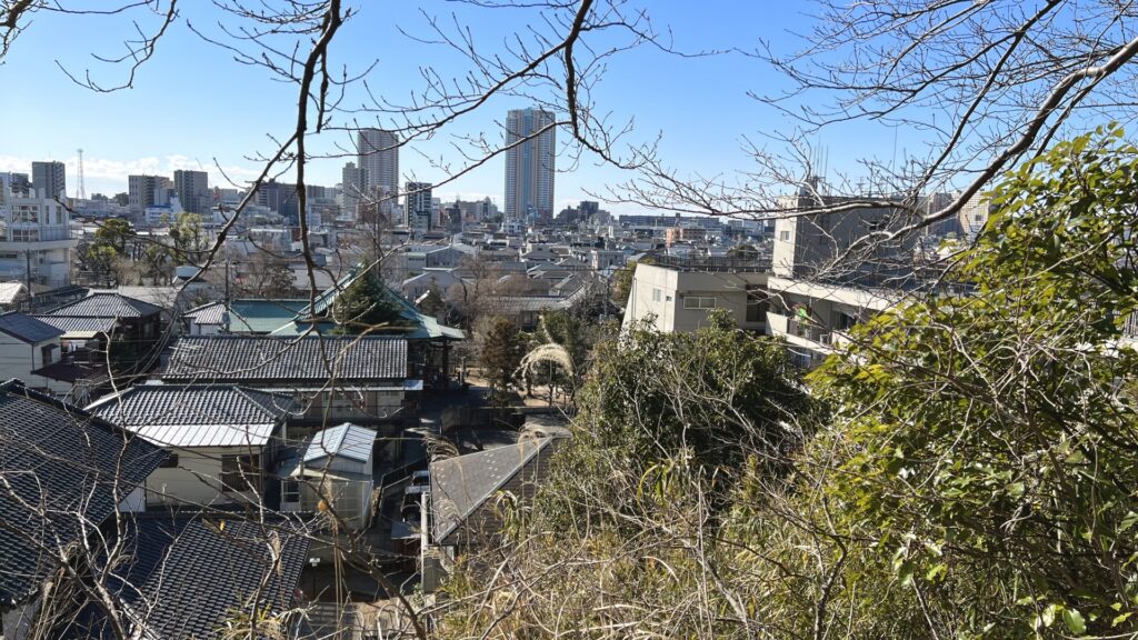 不知八幡坂 弘法寺の北側に位置する不知八幡宮へと続く坂道です。やや急勾配で、周囲は閑静な住宅街が広がります。 不知八幡宮の歴史、坂上からの眺望の一部。
