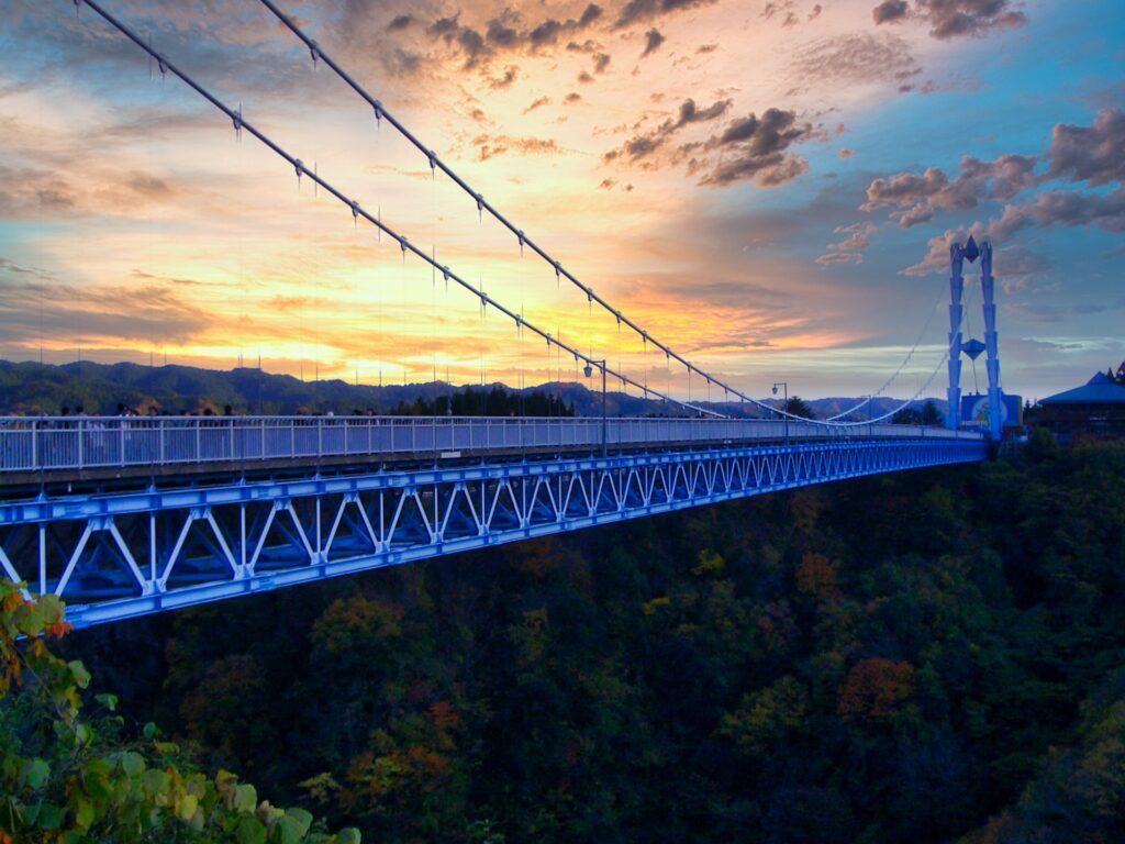 一方、お盆の時期に開催される「竜神峡灯ろうまつり」では、約500基の灯ろうと約100本の竹灯りが橋の周辺を彩ります。 柔らかな光に照らされた吊り橋が夜空に浮かび上がる光景は、非常に幻想的で、日中とは全く異なるロマンチックな雰囲気を楽しむことができます。 これらのイベントに合わせて訪れることで、竜神大吊橋の魅力をさらに深く体験できるでしょう。