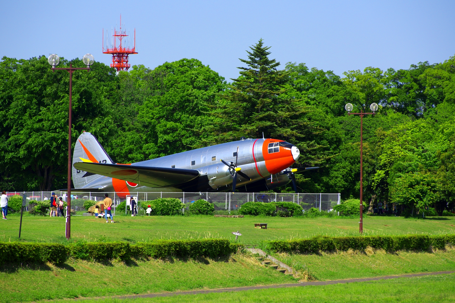 午後は、所沢の歴史と広大な自然を感じられるスポットへ向かいます。蕎麦店から所沢駅に戻り、西武新宿線で一駅の「航空公園駅」へ移動します。駅を降りるとすぐに広がるのが「所沢航空記念公園」です。