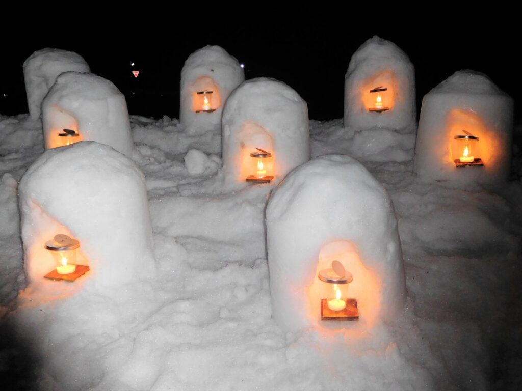 | 沢口河川敷(メイン会場) | 大型かまくらでの飲食体験、ミニかまくらのライトアップ、雪上イベント |