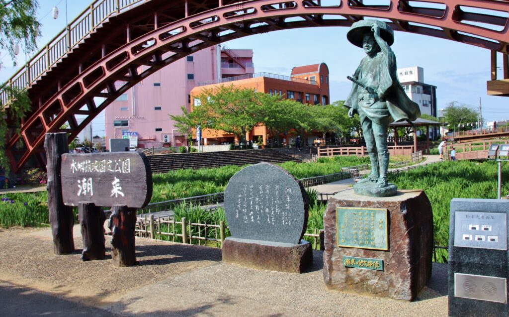 - 潮来花嫁さん記念碑:あやめ園内に設置されており、花村菊江さんの名曲「潮来花嫁さん」や、かつてろ舟で嫁入りが行われていた潮来の伝統を伝えています。 あやめまつり期間中には「嫁入り舟」が再現され、その様子を見ることができます。