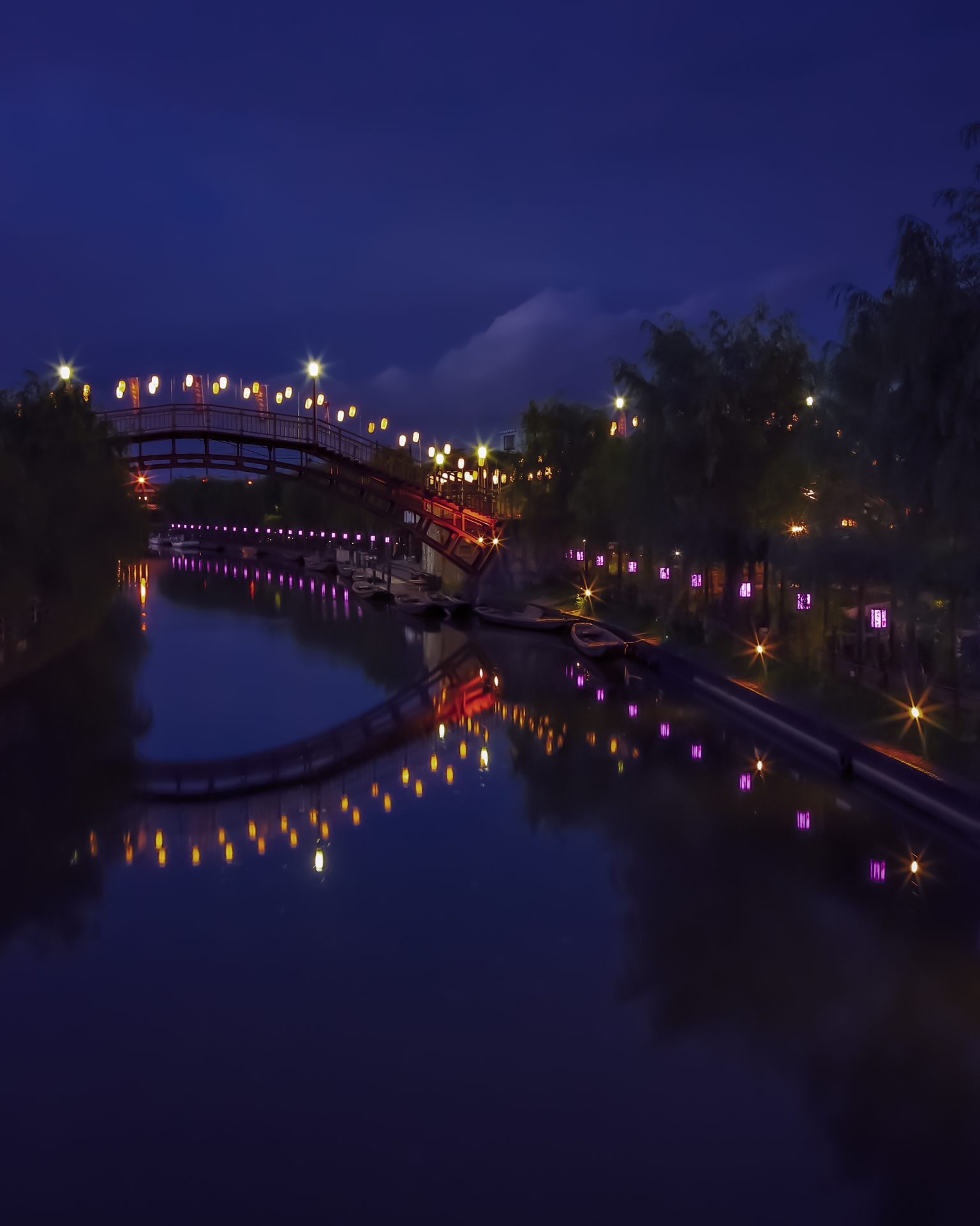 夜間撮影の際は、水面に映り込むあやめや光の揺らぎを意識すると、より深みのある写真になります。 また、夜間に運航される「宵の嫁入り舟」は、ライトアップされたあやめ園を背景に進む姿が非常にロマンチックで、絶好のシャッターチャンスです。 三脚を使用し、ISO感度を適切に設定することで、手ブレを抑え、鮮明で美しい夜のあやめ園を写真に収めることができるでしょう。 まつり期間外にもイルミネーションイベントが開催されることがありますので、訪れる時期に応じて確認してみるのも良いでしょう。