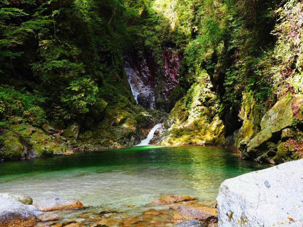 「名水百選」にも選ばれる尾白川は、その清らかな水質で知られます。渓谷沿いには豊かな湧水が随所にあり、透明度と冷たさには誰もが驚くことでしょう。尾白川の湧水は、南アルプスの花崗岩層でろ過された天然水で、ミネラルバランスに優れ、口当たりがまろやかなのが特徴です。散策しながら、自然のフィルターを通って湧き出る生命の水を直接感じることができます。この清冽な水は、周辺の生態系を豊かにし、訪れる人々に癒やしを与えています。