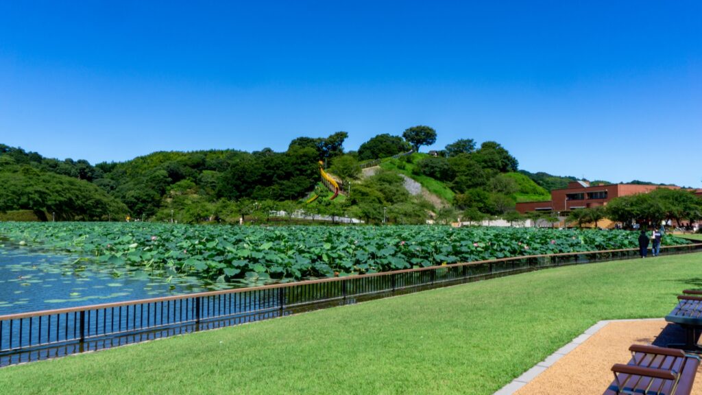 蓮華寺池公園は、「花・水・鳥・笑顔」をテーマにした広大な公園で、バードウォッチング以外にも様々な施設が充実しています。