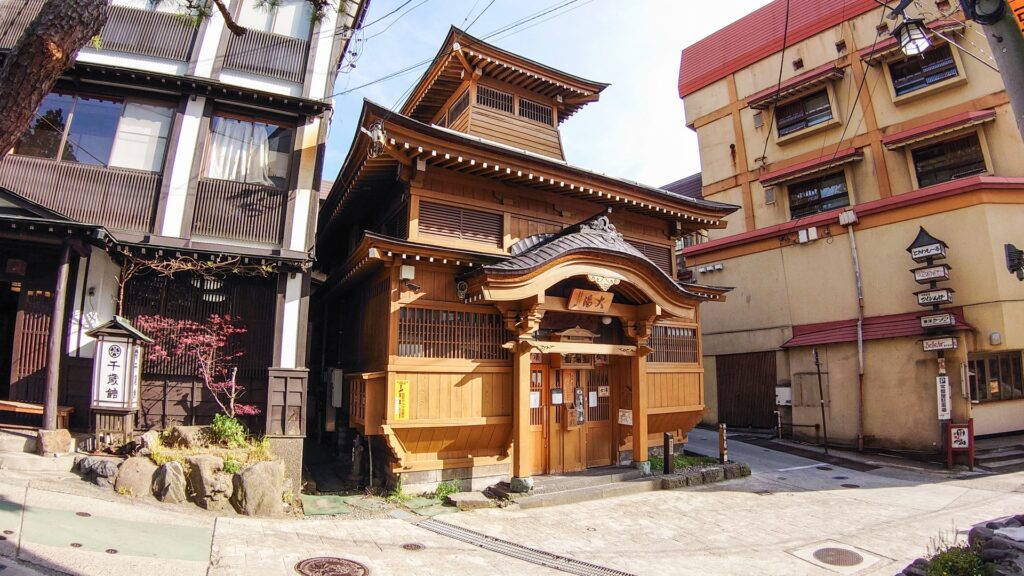 | 河原湯(かわはらゆ) | 唐破風の重厚な湯屋造りが特徴で、昔は渓流沿いの河原にあったことから名付けられました。湯温は高めで、皮膚病に効くとされ、朝湯や夏場に人気があります。泉質は含石膏-食塩・硫黄泉です。 |