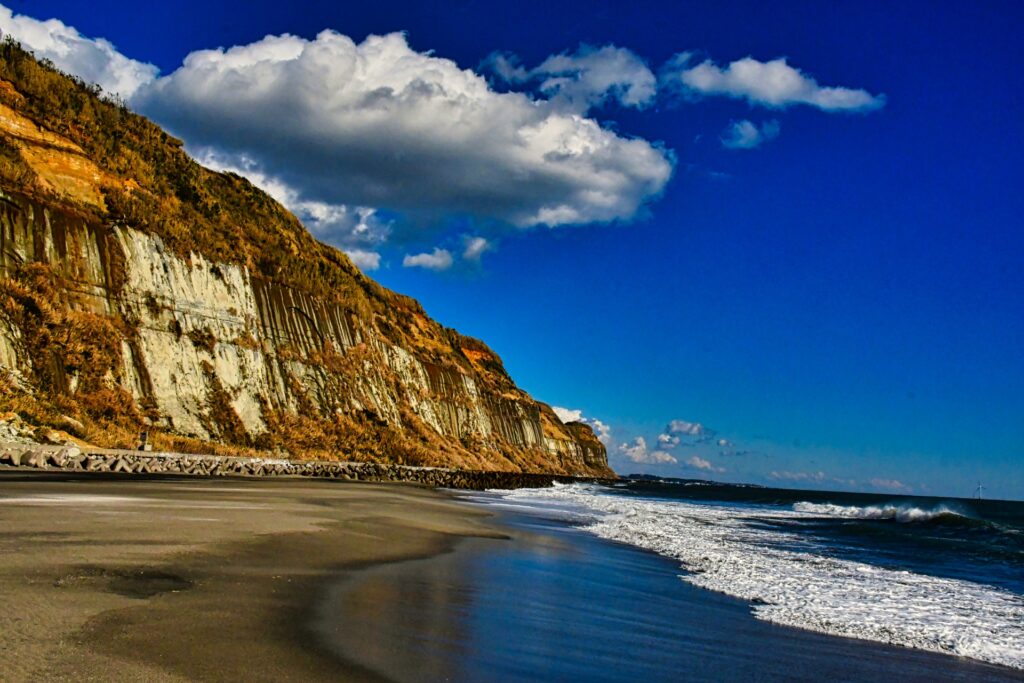 千葉県銚子市に広がる「屏風ヶ浦」は、約10kmにわたって続く雄大な地層が“東洋のドーバー”と称される絶景です。この記事では、地球の歴史を間近に感じられる屏風ヶ浦の遊歩道について、その入口やアクセス方法、見どころを詳しく解説します。特に、海岸線を歩く上で最も重要な「満潮時の危険性」に焦点を当て、潮見表の確認方法や安全に散策するための注意点を徹底解説。この記事を読めば、屏風ヶ浦の壮大な地層絶景を安全かつ最大限に楽しみ、周辺の銚子観光まで満喫できる完璧な計画が立てられるでしょう。