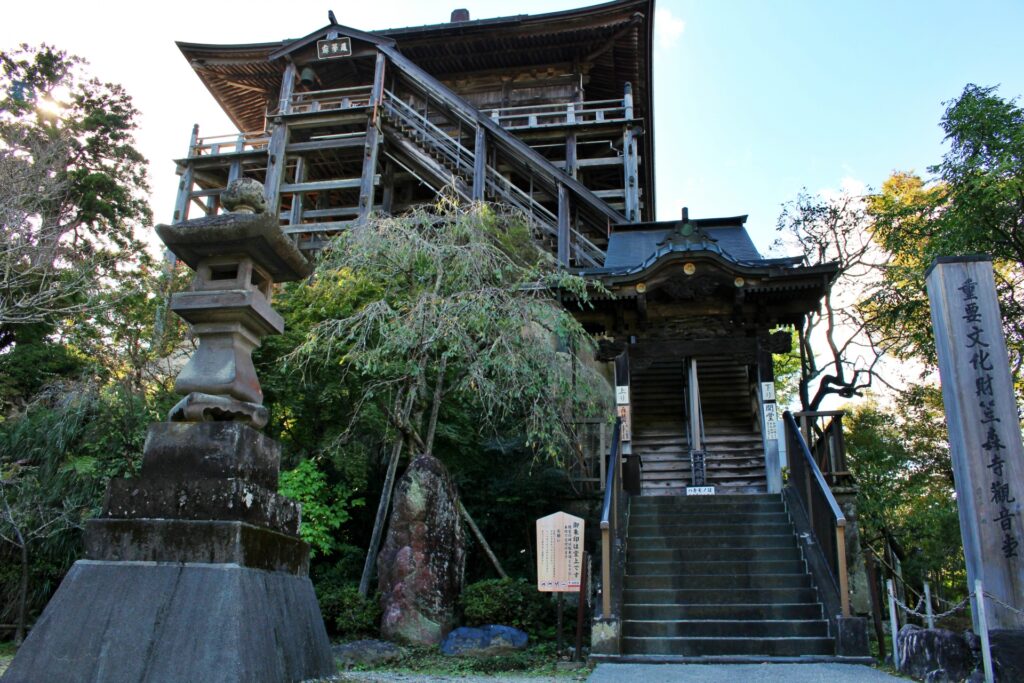 観音堂へは、まず靴を脱いでスリッパに履き替えて75段の急峻な木造階段を登ります。回廊の周囲には高欄(手すり)がしっかりと巡らされており、安全に配慮されています。しかし、一部情報では「転落注意」の看板があるものの、特別な転落防止設備はないとも言われており、常に足元に注意を払うことが重要です。