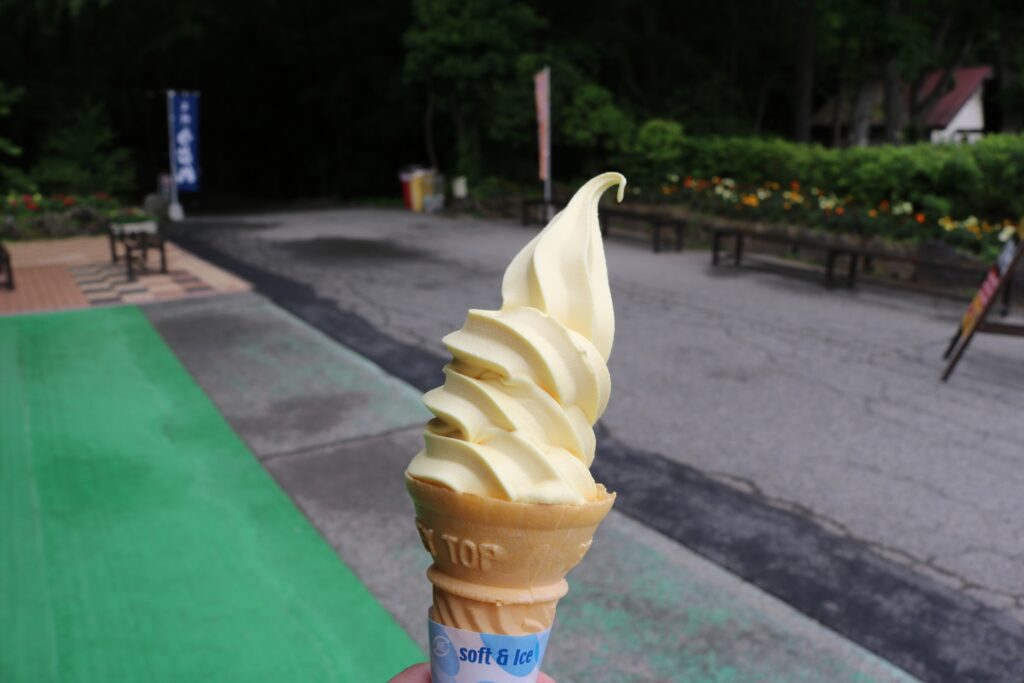開田高原を訪れたらぜひ味わいたいのが、地元産のとうもろこしを贅沢に使ったとうもろこしアイスです。 標高1,200mの冷涼な気候で育った甘みたっぷりの朝採りとうもろこしが、アイスクリームの主役として使われています。 口に含むと、とうもろこし本来の濃厚な甘みと香りが広がり、その自然な美味しさに驚かされるでしょう。 開田高原アイスクリーム工房などでは、バニラととうもろこしのミックスソフトクリームも人気で、すっきりとしたバニラとスイートコーンの香りが交互に楽しめると評判です。 ジェラートタイプや、手軽に食べられるスパウト(チューブ)タイプのアイスもあり、様々な形でその味を楽しめます。
