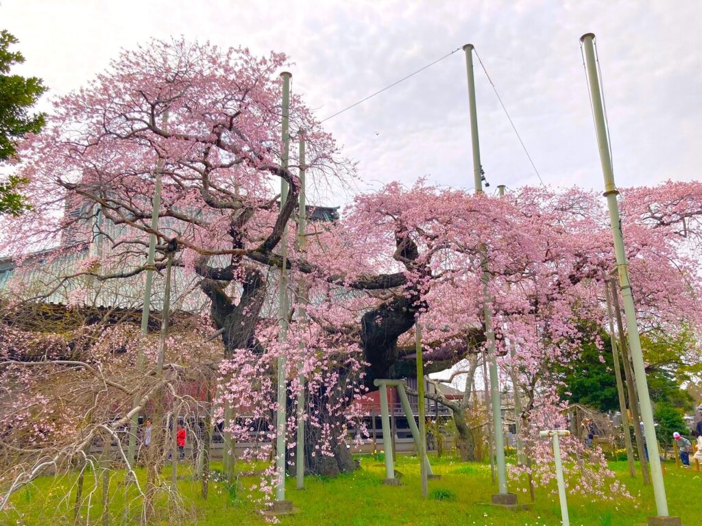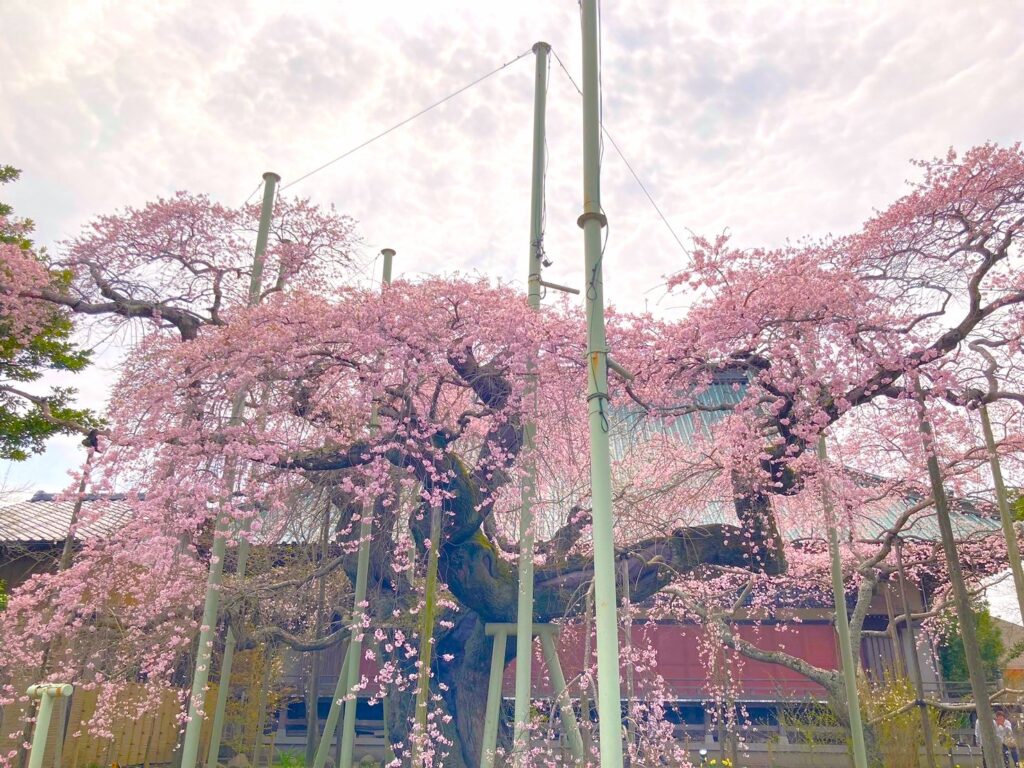 般若院は、樹齢400年を超える見事なシダレザクラで特に有名です。このシダレザクラは茨城県の天然記念物に指定されており、春には多くの花見客で賑わいます。夜間にはライトアップも行われ、幻想的な雰囲気を醸し出します。